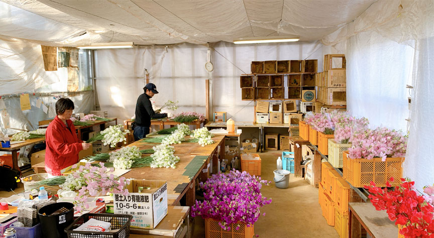 生産者一丸となって皆様へ色・香りともに最高品質のスイートピーをお届けいたしますのでよろしくお願いします。