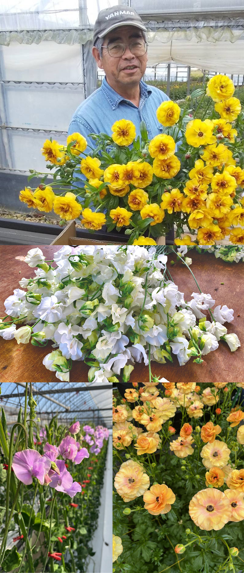 大分県より今が旬のラナンキュラス(ラックス咲)とスイートピーのご紹介です。
